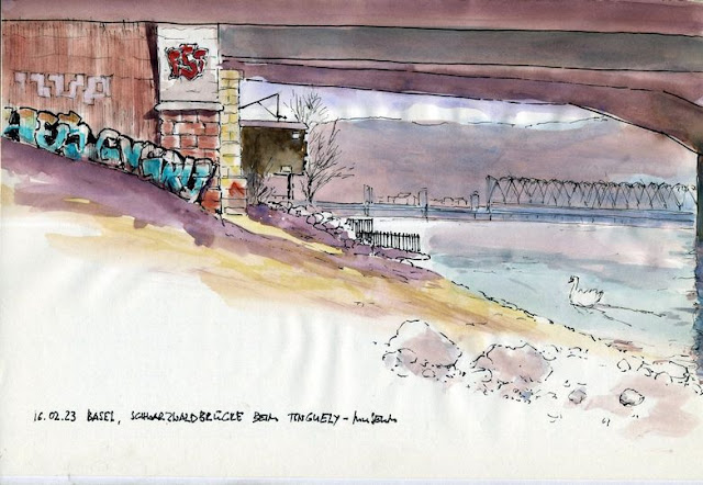 Treffen der Donnerstagsgruppe der Urban Sketchers Dreiländereck am 16.02.2023 im Tinguely Museum.